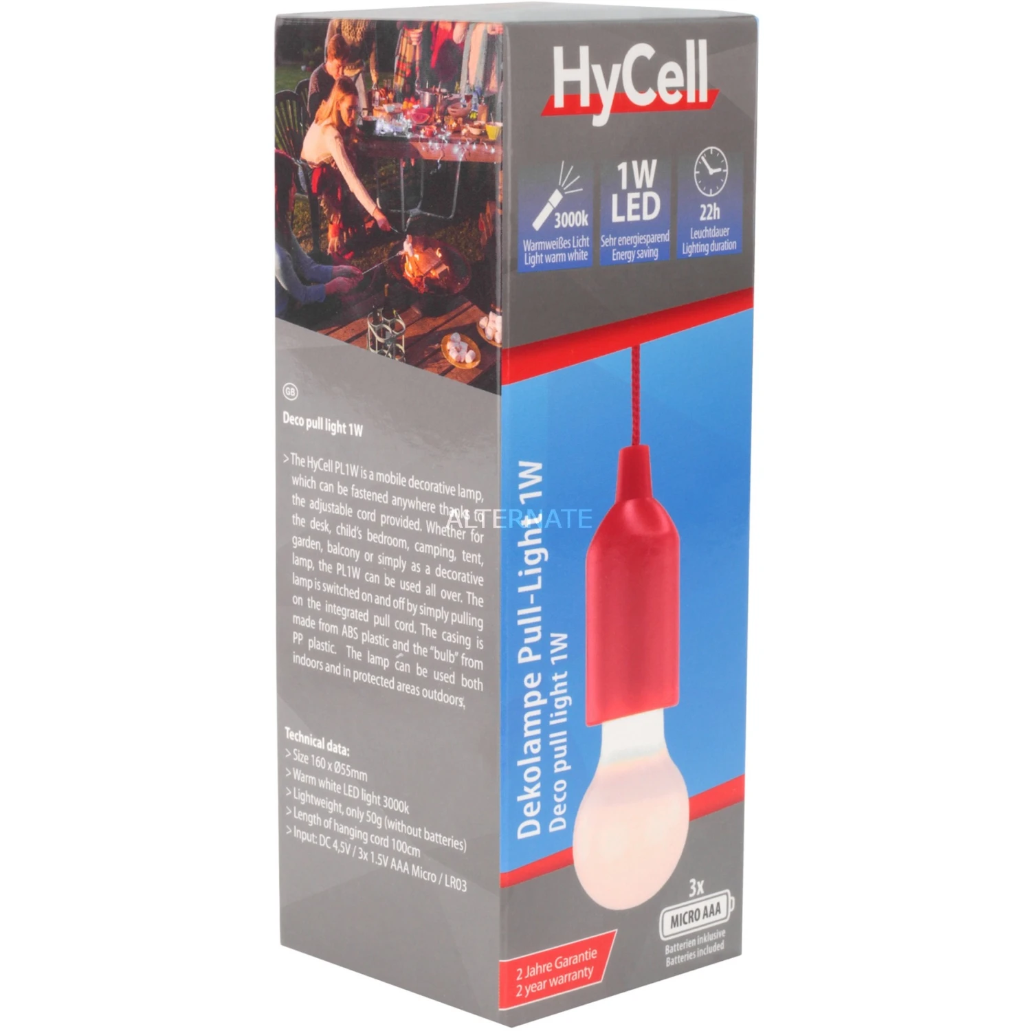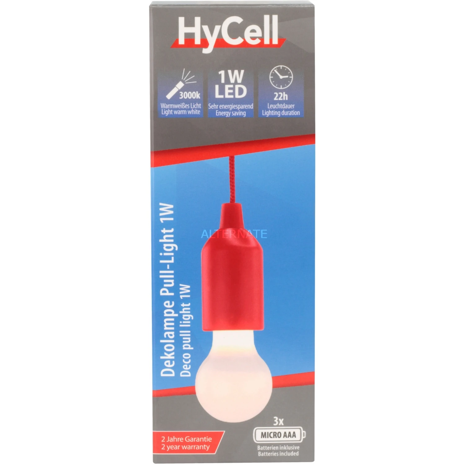 Das Pull-Light PL1W von Ansmann ist eine praktische Dekoleuchte mit kabelloser LED-Glühbirne und Kordel-Zugschalter. Sie wird mit 3 Micro-AAA-Batterien betrieben und erreicht eine Leuchtdauer von bis zu 22 Stunden. Die warmweiße LED erzeugt dabei einen Lichtstrom von 25 Lumen.